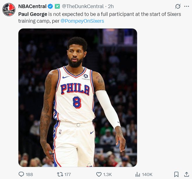 喬治:膝傷仍在恢復(fù),無(wú)法進(jìn)行完整對(duì)抗訓(xùn)練,我剛經(jīng)歷最糟糕一年