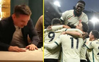 這內(nèi)維爾打賭失敗,被迫在曼聯(lián)0-5利物浦的球票上簽名